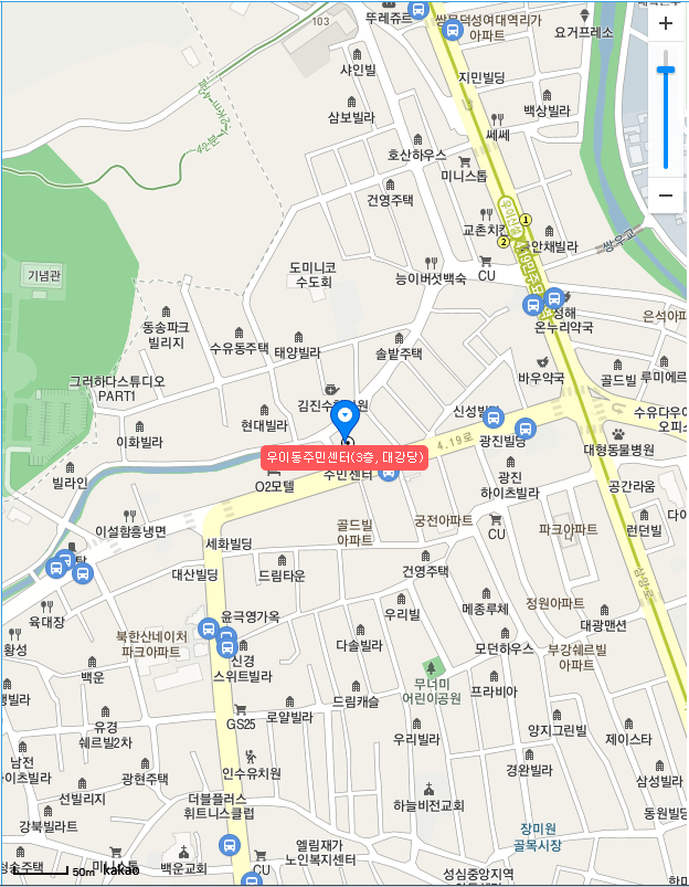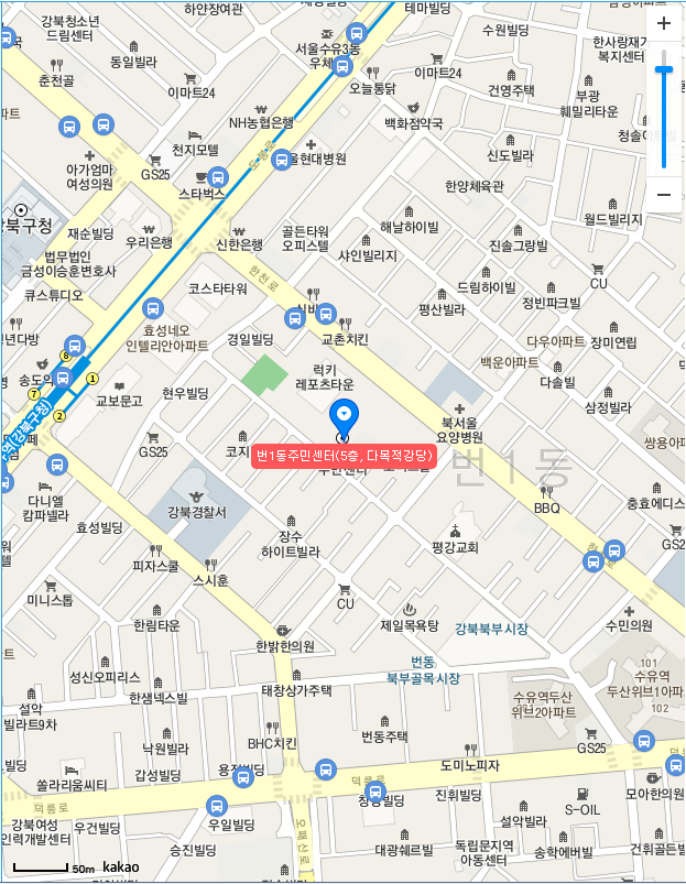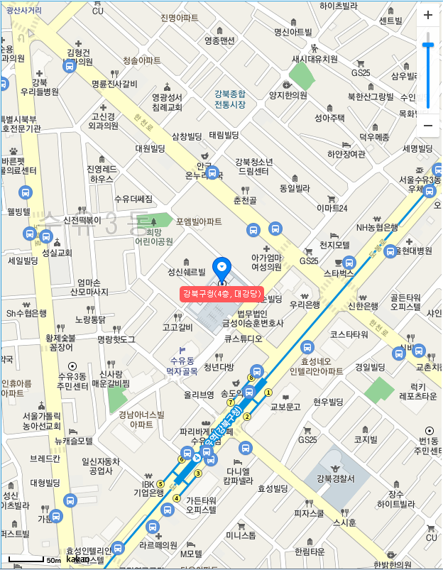 정확한 주소는 서울특별시 강북구 삼양로 299 (수유동)이라고 하네요.
