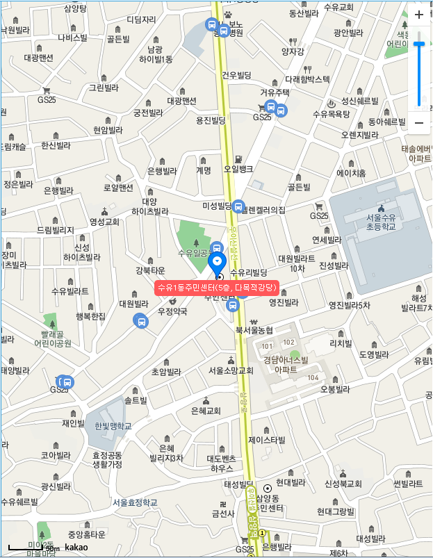 강북구 수유1동 사전투표소는 수유1동 주민센터 5층 다목적강다이라고 합니다.