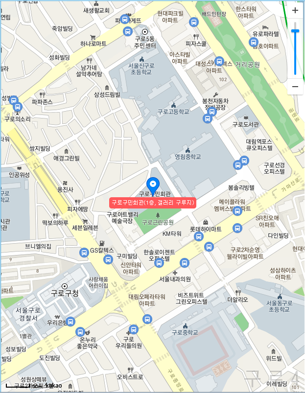 구로구 구로5동 사전투표 장소는 구로구민회관 1층, 갤러리 구루지라고 합니다.