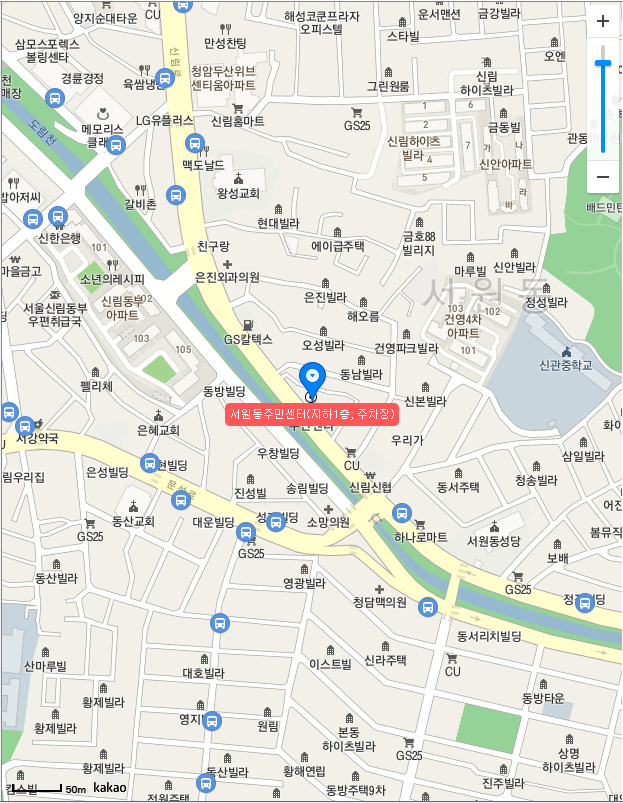 소재지는 서울특별시 관악구 신림로 114 (서림동)이라고 하네요.