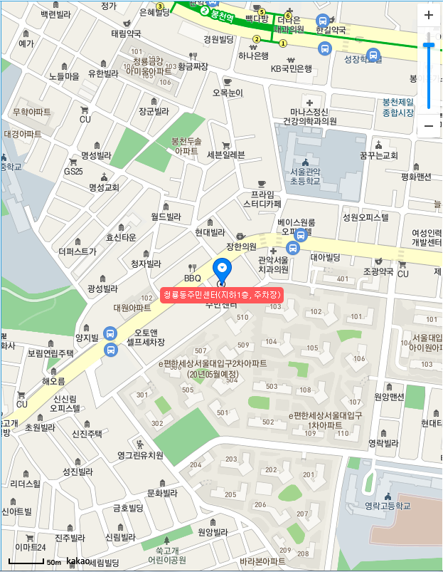 정확한 주소는 서울특별시 관악구 쑥고개로 44 (청룡동)이라고 하네요.