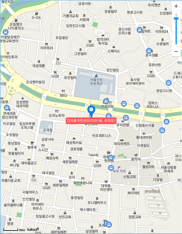 주소는 서울특별시 관악구 신림로 111 (대학동)이라고 하네요.