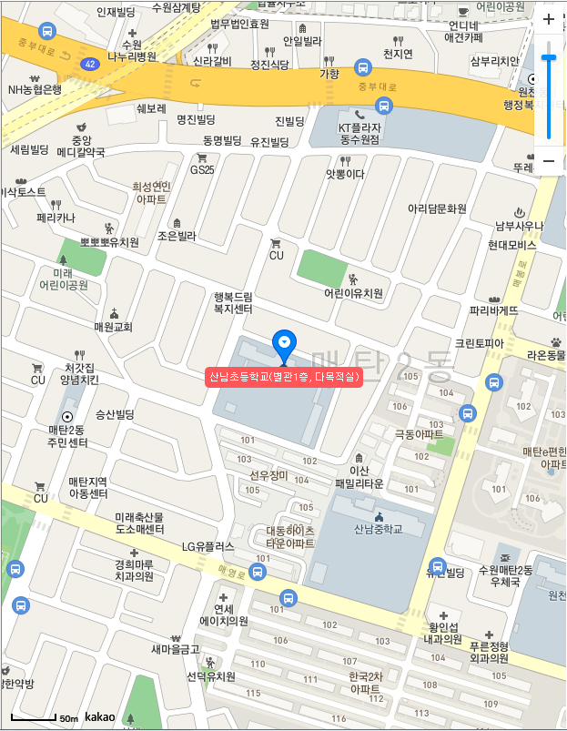 수원시 영통구 매탄2동 사전투표소는 산남초등학교 별관1층, 다목적실이라고 합니다.