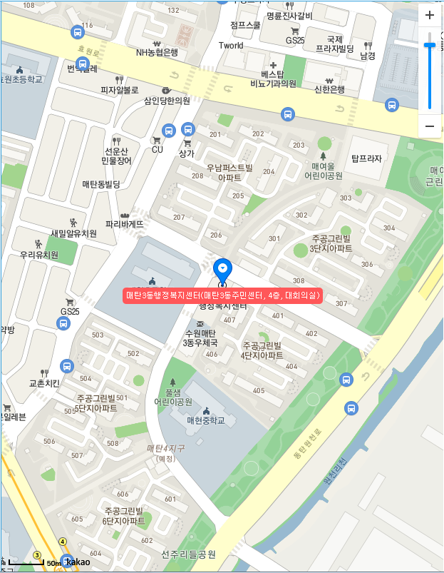 경기도 수원시 영통구 사전투표 장소 원천동은 원천동행정복지센터(원천동주민센터) 3층, 다목적실이라고 합니다. 정확한 주소는 경기도 수원시 영통구 중부대로 339 (원천동)이라고 하네요.