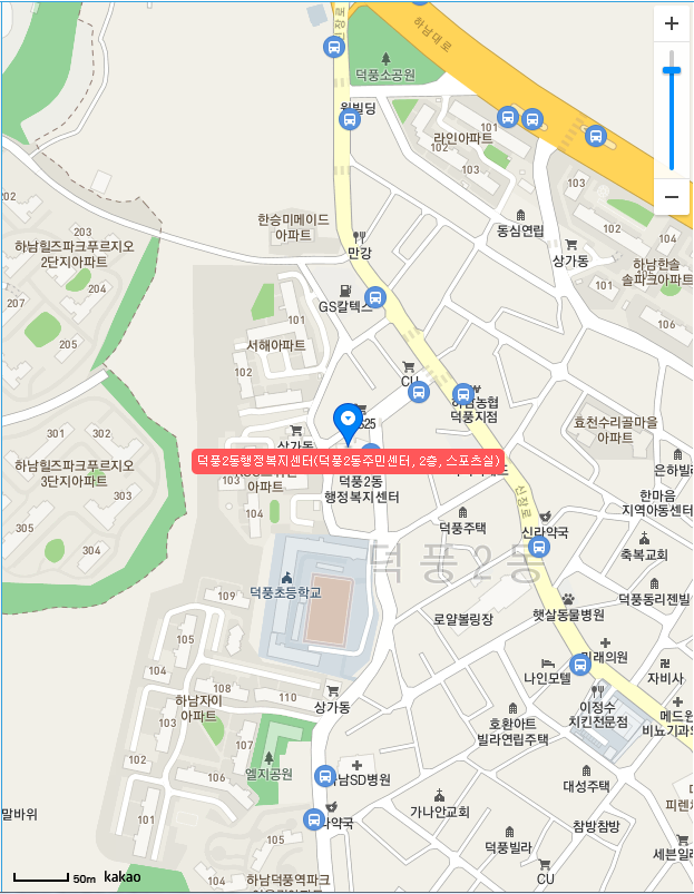 하남시 사전투표장소 덕풍2동은 덕풍2동행정복지센터(덕풍2동주민센터) 2층, 스포츠실이라고 합니다.
