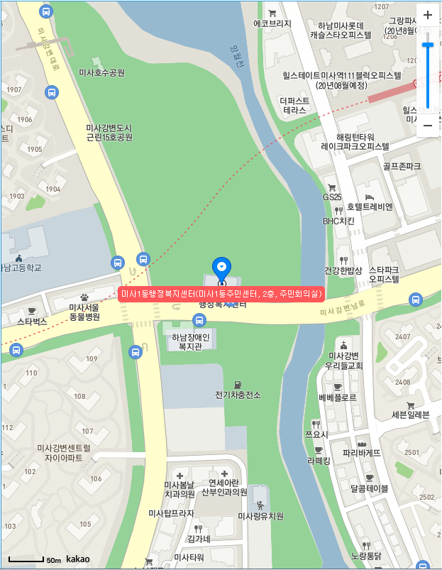 하남시 사전투표 장소 미사1동은 미사1동행정복지센터(미사1동주민센터) 2층, 주민회의실이라고 합니다.