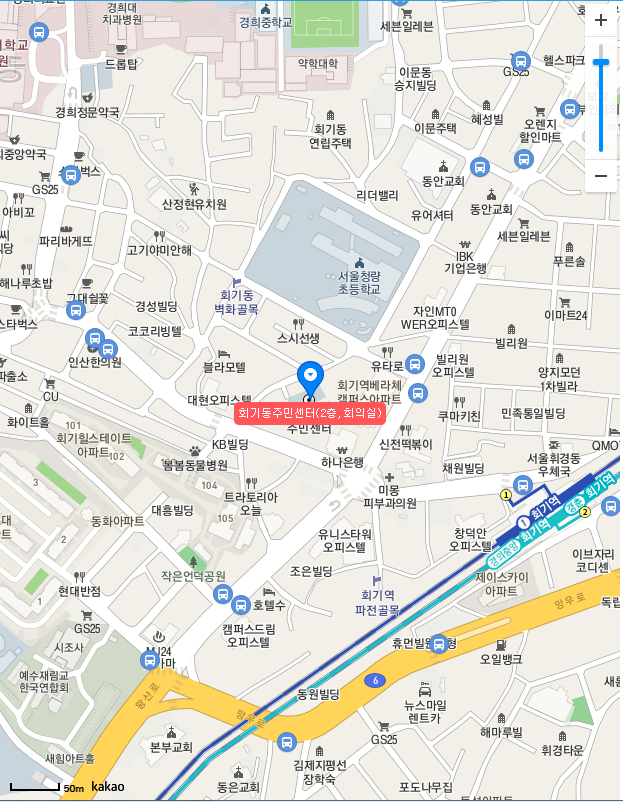 소재지는 서울특별시 동대문구 회기로25길 12-1 (회기동) 이라고 하네요.