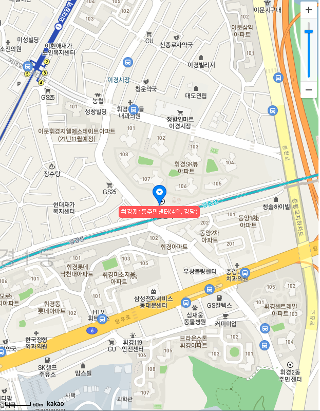 동대문구 휘경2동 사전투표 장소는 휘경2동주민센터 5층, 강당이라고 합니다. 정확한 주소는 서울특별시 동대문구 한천로 329 (휘경동) 이라고 하네요.